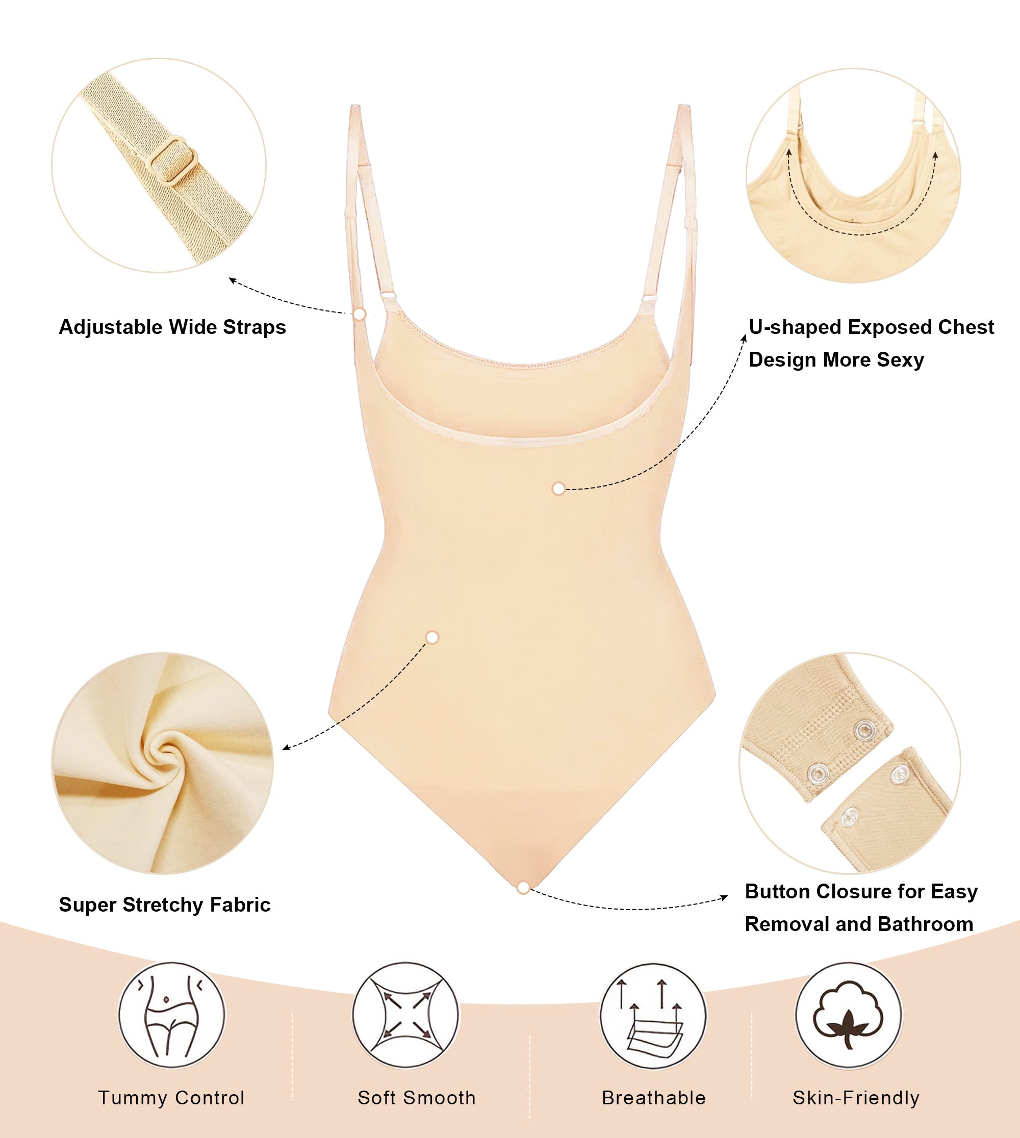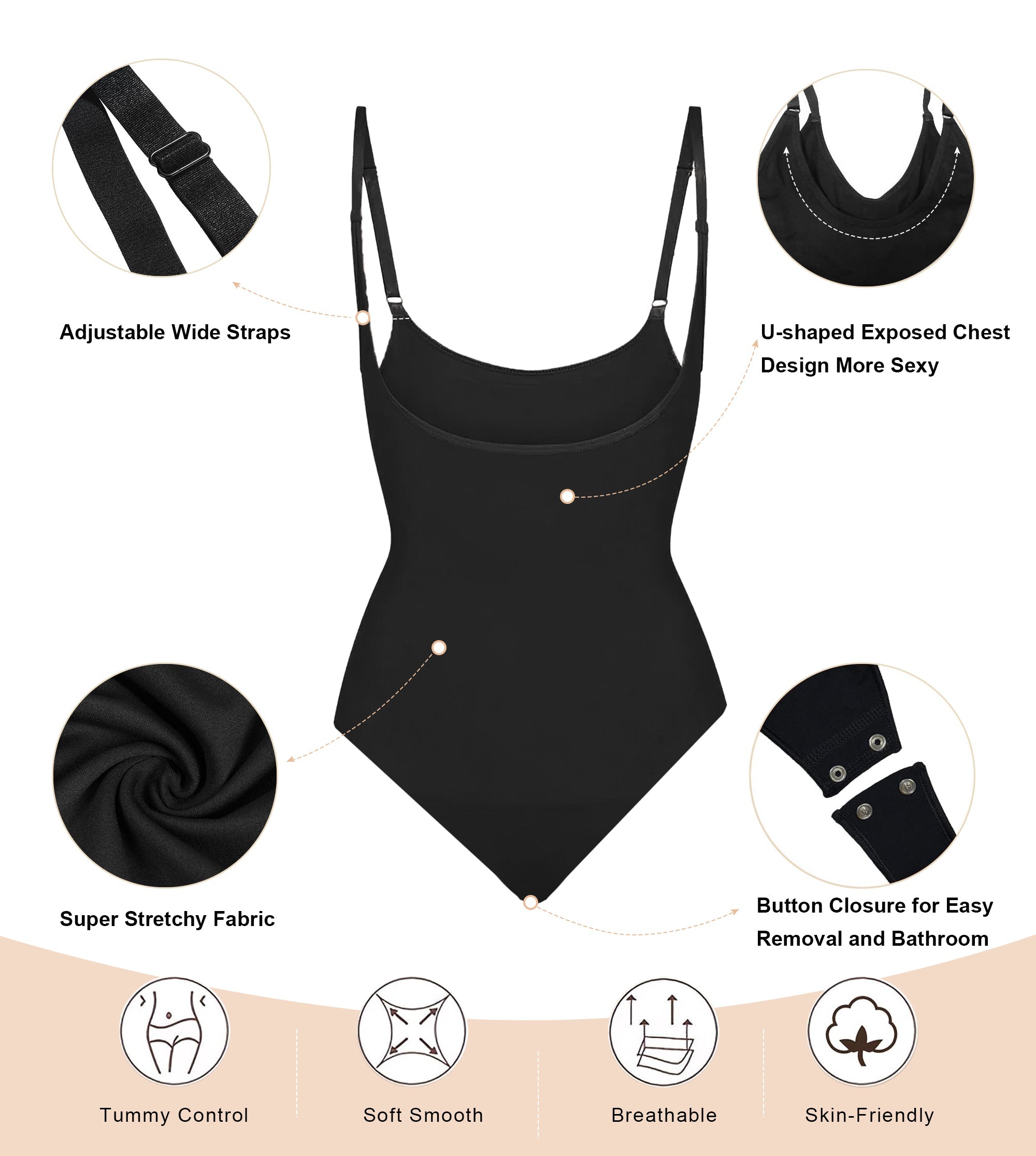 • Comfortable Fit: Made from high-quality fabric, the women's thong bodysuit is lightweight, stretchy, and skin-friendly. With its high-back design, it provides full shaping coverage for a sleek look