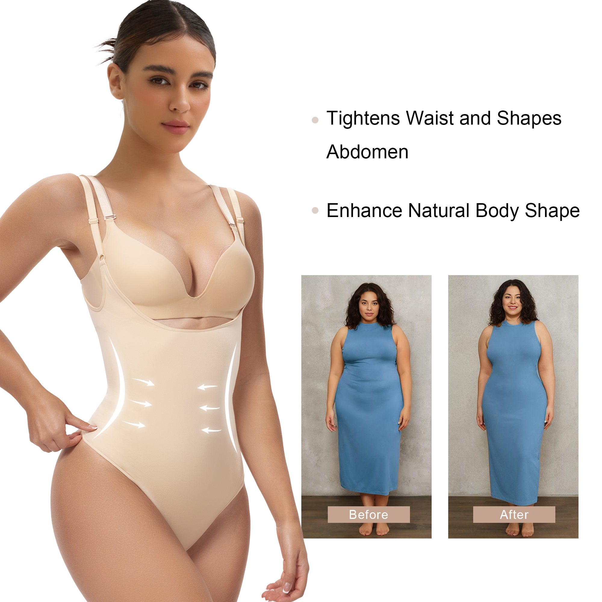 SHAPERX Seamless Open-Bust Tummy Control Bodysuit